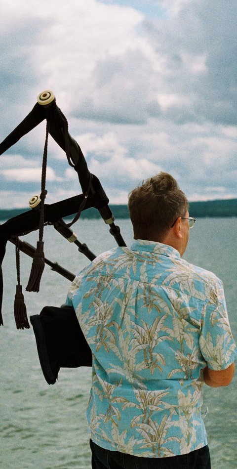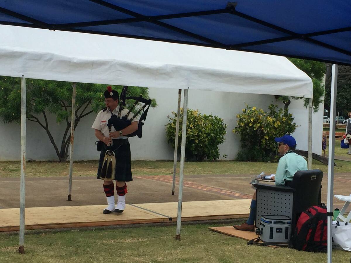 I have now been playing bagpipes for over a dozen years, first in the Washington DC area where I studied with Grade 1 piper and City of Alexandria Pipe Major, John Sprague, then in Honolulu for the past ten years, initially playing with the Celtic Pipes and Drums of Hawaii under Piper Major Dan Quinn, followed by piping as a solo piper and currently with the Isle of Maui Pipe Band. Over that time, I have performed as a solo piper for many events including weddings, church services, funerals, memorial services, and birthdays. I have even piped for ash scatterings on board a sailboat at sea and on an outrigger canoe! In 2022, I was honored to lead a small ensemble in piping for Queen Elizabeth's 75th Jubilee Celebration at 'Iolani Palace.
