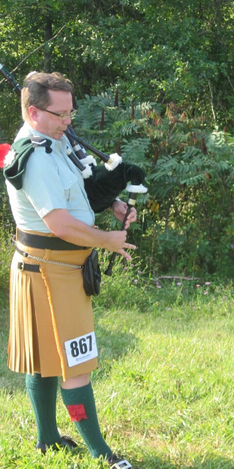 I am available for piping events of all types: parties, weddings, memorials, church services, etc. My attire includes the Black Watch tartan kilt, Prince Charlie jacket, Glengarry (hat), sporan (pouch) and ghillie brogues (shoes). My repertoire includes over 100 tunes and I will consider requests of new tunes as well, although one must realize the Great Highland Bagpipes, being one of the older Western musical instruments, is only built to play 9 notes. So, not every musical piece fits well on the Highland pipes.